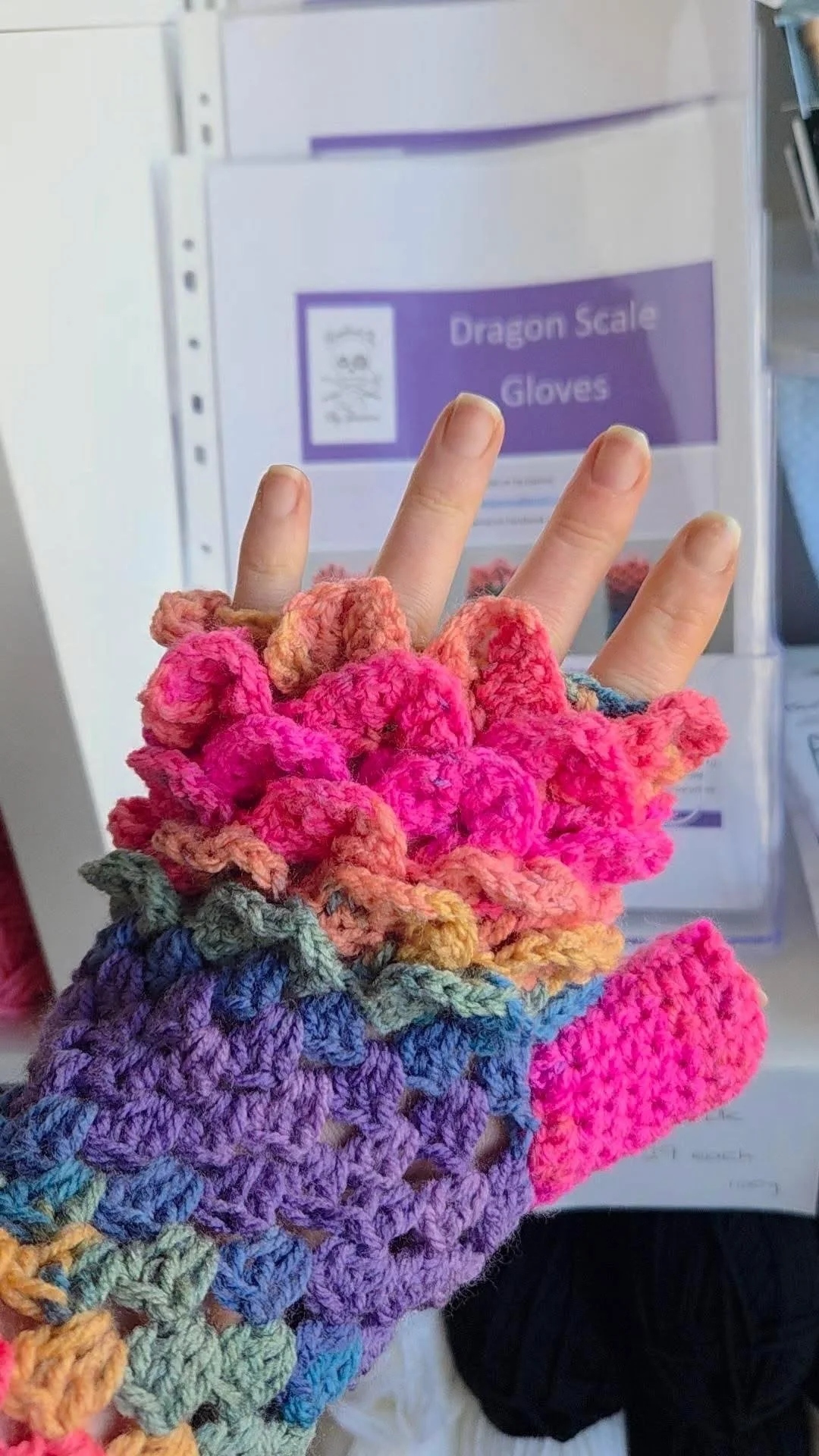 I will guide you through a crochet pattern written by Hooked on by Joanna to create your own dragon scale gloves using a choice of Giggles DK yarn.